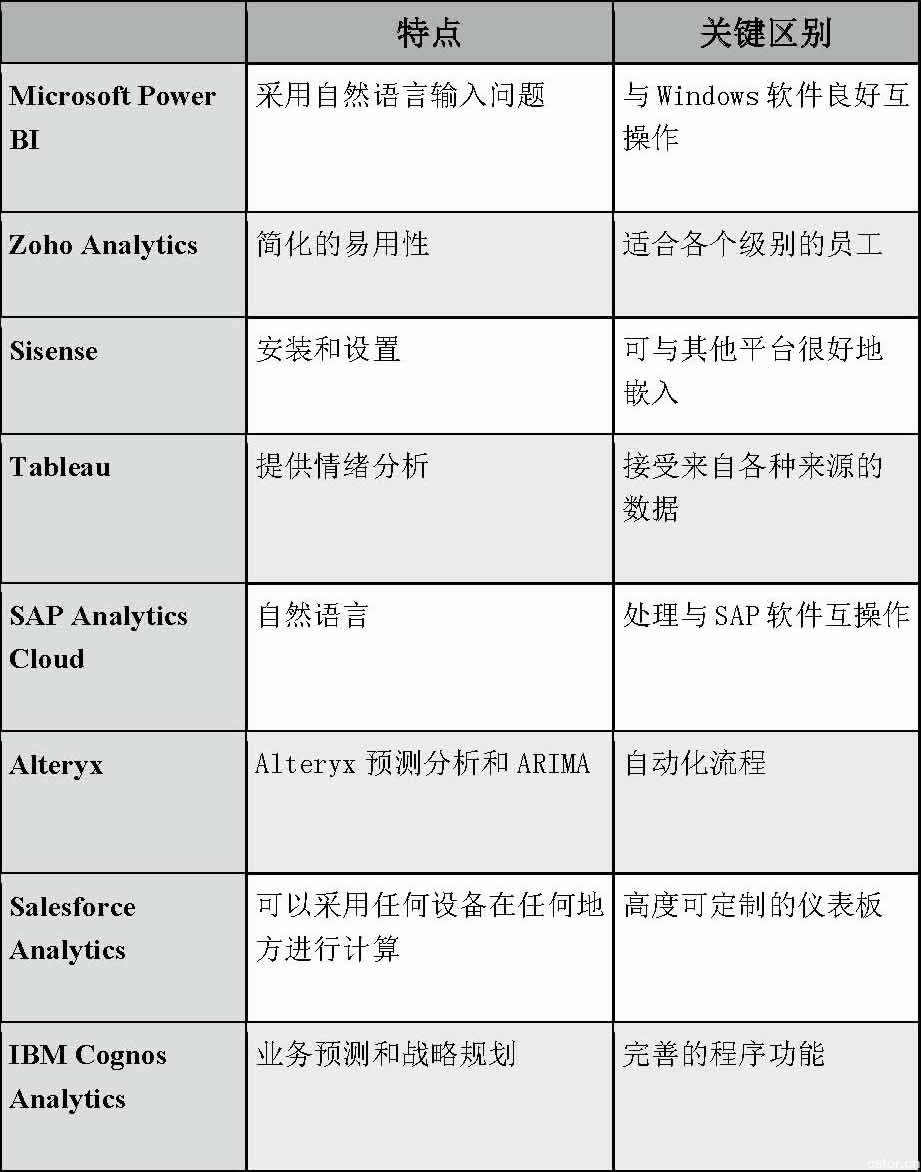 盡管以下這些并不是齊全的商業智能軟件列表,但其應用程序代表了當今商業智能的領先優勢。