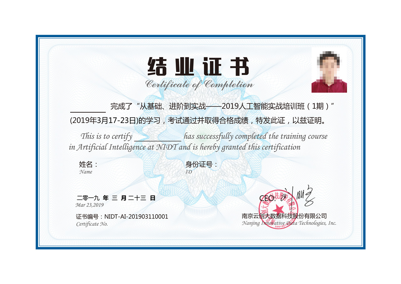 【必發(fā)】劉鵬教授與云創(chuàng)大數(shù)據(jù)聯(lián)合頒發(fā)的人工智能實(shí)戰(zhàn)培訓(xùn)結(jié)業(yè)證書。(結(jié)課后為每位學(xué)員頒發(fā))