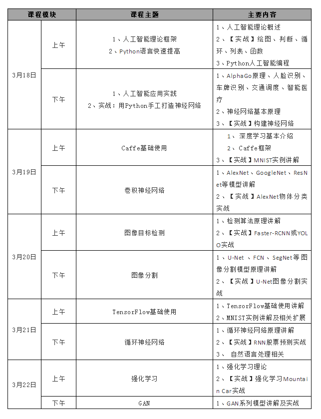 2019人工智能實戰(zhàn)培訓(xùn)大綱