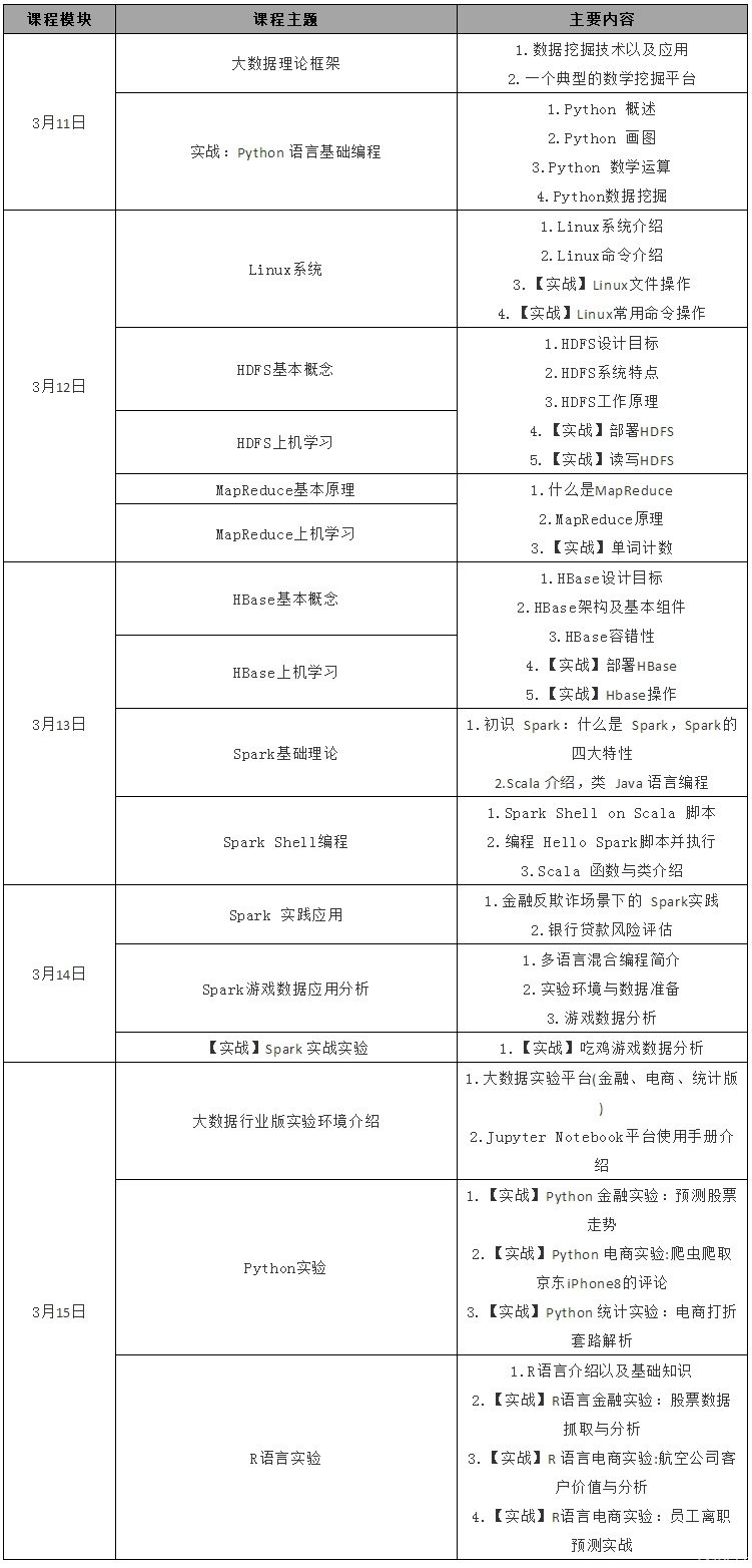 看了以上7個問題,相信大家對于大數據和人工智能課程的選擇已經心中有譜,下面就以近期正在招生的“2019大數據/人工智能實戰培訓”為例,進行具體的例舉分析: