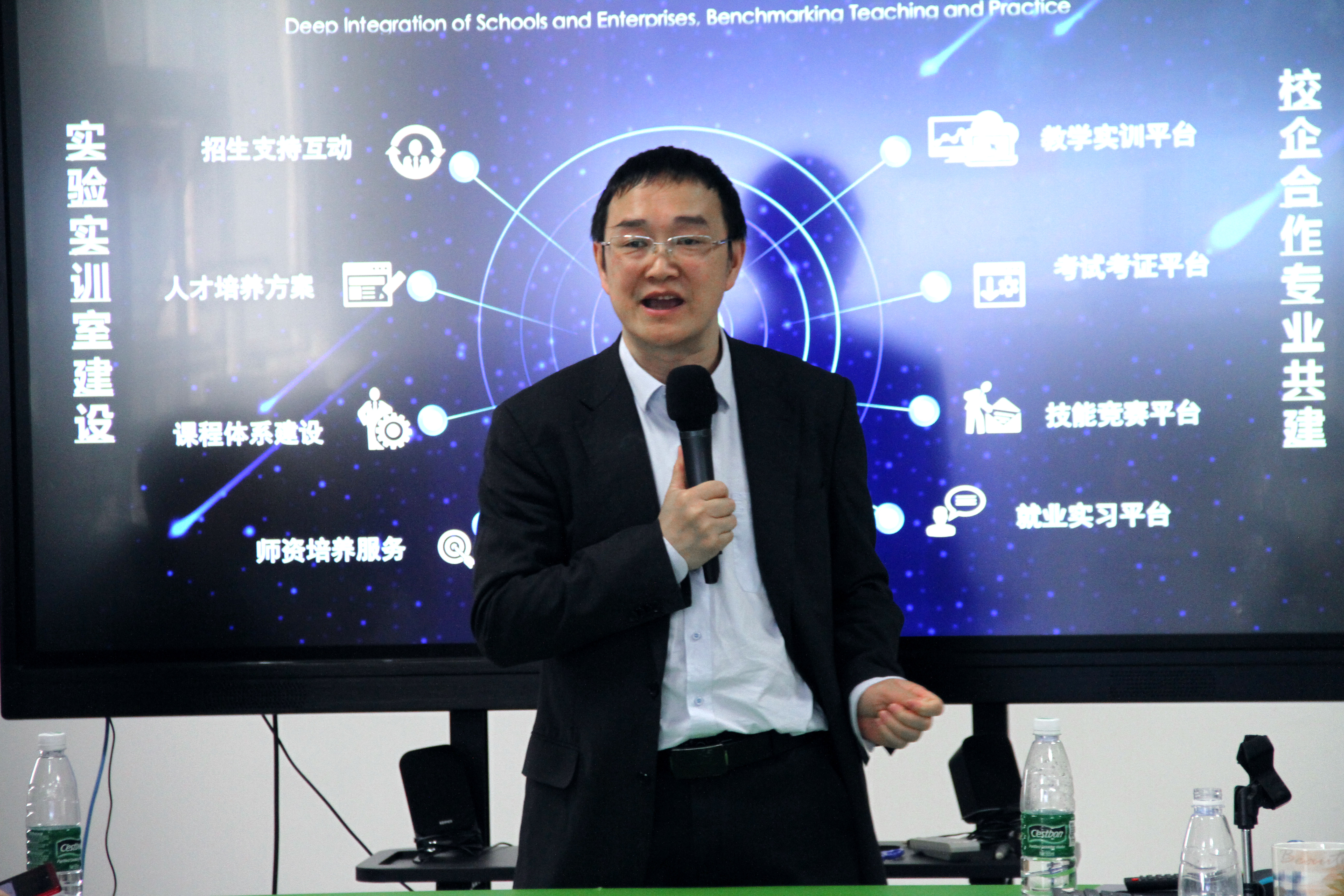 稍后,合作辦學總監張偉圍繞云創大數據合作辦學和實驗室建設的不同,以及合作辦學成功案例、合作模式和權責分工等內容進行了詳細介紹。通過其介紹我們得知,云創合作辦學事業就是要實現院校、合作伙伴和云創三方的共贏,此外更要對學生和家長負責,讓每名學生都能找到滿意的工作,從而為行業輸送優秀人才。值得一提的是,鄭州升達經貿管理學院采用云創大數據實驗平臺培養的2018年畢業生的就業企業和薪資待遇一度成為張偉總監與各企業負責人的熱議話題。