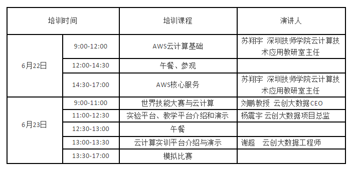 6月22-23日,歡迎各院校老師參加云創(chuàng)大數(shù)據(jù)(工信部教育與考試中心授權(quán)的“工業(yè)和信息化人才培養(yǎng)工程培訓(xùn)基地”)舉辦的云計算免費實訓(xùn),由劉鵬教授、蘇翔宇老師與云創(chuàng)大數(shù)據(jù)工程師共同呈現(xiàn)世界技能大賽的備賽情況,并展示AWS、云計算實訓(xùn)平臺,參加學(xué)員還可現(xiàn)場進行上機體驗。期待您的蒞臨!