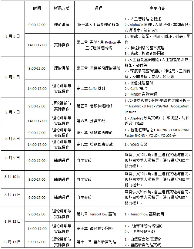 培訓內(nèi)容注重實戰(zhàn)性和應用性,再現(xiàn)實際應用場景,穿插講解理論知識,通過理論與實踐相結合的培訓,提高學員對包括Hadoop生態(tài)圈、MapReduce編程、HBase實驗、Scala編程、Spark應用、Python語言等大數(shù)據(jù)應用、工具、主流操作的理解和掌握,以及包括Caffe 、TensorFlow、GAN、Keras、圖像語義分割(FCN模型、U-Net模型)、經(jīng)典卷積神經(jīng)網(wǎng)絡(AlexNet、ZFNet、VGGNet、GoogLeNet、ResNet)、圖像目標檢測(Faster R-CNN、YOLO2)、循環(huán)神經(jīng)網(wǎng)絡、自然語言處理、強化學習等人工智能應用、工具、主流操作的理解和掌握,并通過多門類的實戰(zhàn)項目,切實解決實際應用中的疑難問題。
