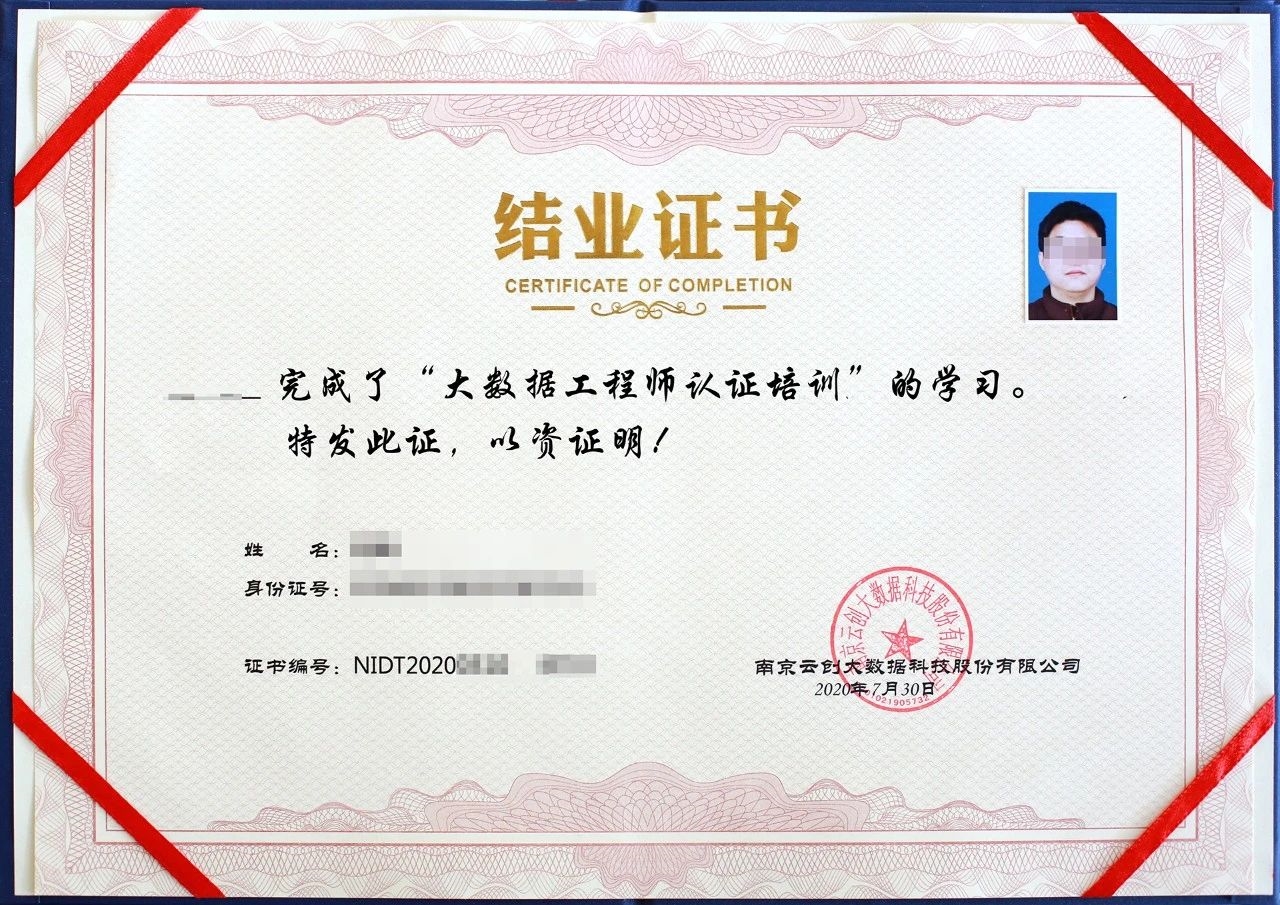 對(duì)于參加訓(xùn)練營的學(xué)員,完成培訓(xùn)統(tǒng)一頒發(fā)“結(jié)業(yè)證書”;通過云創(chuàng)認(rèn)證考試且成績合格,才能獲得“大數(shù)據(jù)工程師認(rèn)證證書”,以此作為專業(yè)技術(shù)人員職業(yè)能力考核的證明。