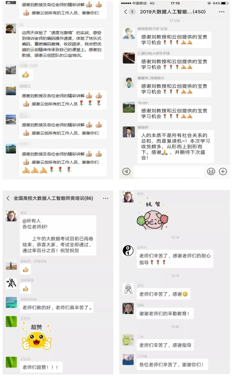 2020年3月23日-4月19日,在為期4周的大數(shù)據(jù)能力認(rèn)證(中級(jí))在線培訓(xùn)中,來自全國不同地區(qū)、不同高校的老師學(xué)生、教育行業(yè)從業(yè)者等共計(jì)200余位學(xué)員參加了培訓(xùn)。培訓(xùn)好評(píng)如潮,口碑炸裂,切實(shí)幫助學(xué)員獲得了實(shí)戰(zhàn)經(jīng)驗(yàn),提升了職業(yè)技能,并獲得了行業(yè)前沿的企業(yè)認(rèn)證。