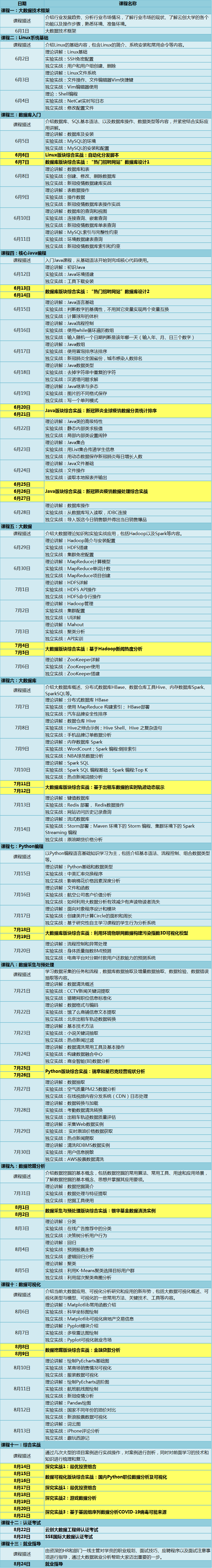 本次訓(xùn)練營主要針對(duì)大專以上,有學(xué)習(xí)能力,有重塑自我精神的相關(guān)專業(yè)學(xué)生。通過理論學(xué)習(xí)與在線實(shí)驗(yàn)的方式,幫助學(xué)員真正獲得實(shí)戰(zhàn)經(jīng)驗(yàn),有針對(duì)性地提升職業(yè)技能,并獲得行業(yè)前沿的企業(yè)認(rèn)證以及大數(shù)據(jù)行業(yè)的敲門磚。